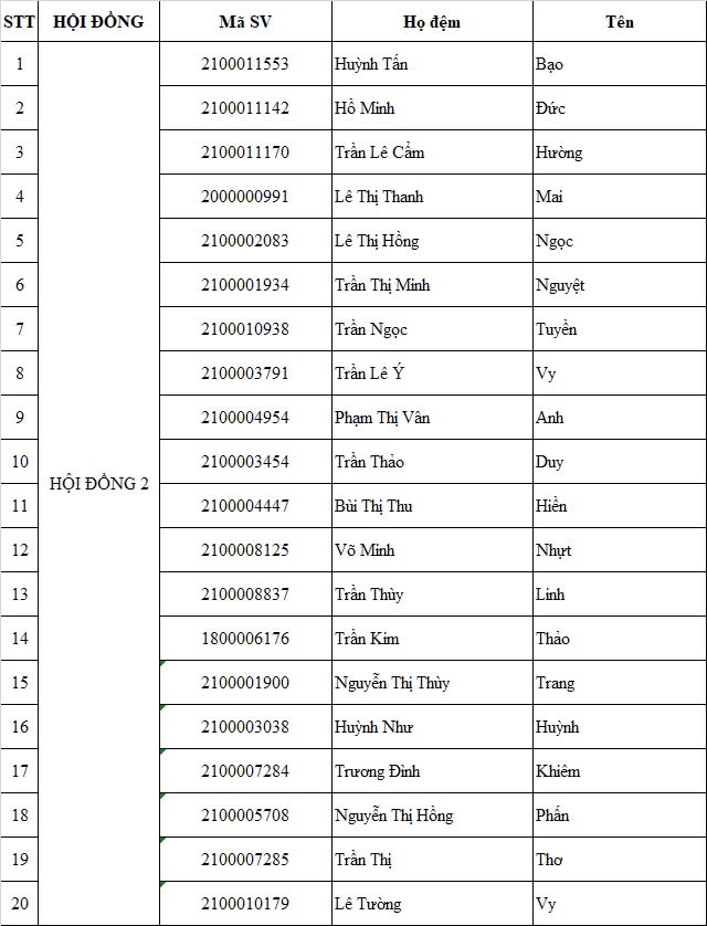 2. Thời gian tổ chức Hội đồng Khóa luận tốt nghiệp