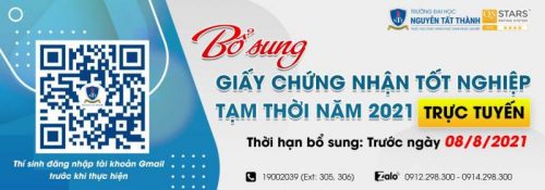 Hội đồng tuyển sinh Trường Đại học Nguyễn Tất Thành thông báo về việc bổ sung giấy Chứng nhận tốt nghiệp tạm thời – Năm 2021;...