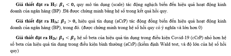 Quy mô tín dụng (scale) phản ánh quy mô hoạt động đầu ra của các ngân hàng, khi ngân hàng mở rộng hoạt động cho vay tín dụng cho đến mức tối ưu làm tăng hiệu quả hoạt động kinh doanh (BP). Song việc mở rộng quá mức dẫn đến áp lực chi phí từ lãi & chi phí hoạt động có khả năng làm giảm hiệu quả hoạt động kinh doanh (BP), đặc biệt trong điều kiện Covid-19 tác động của quy mô tín dụng ngược chiều với hiệu quả kinh doanh của ngân hàng