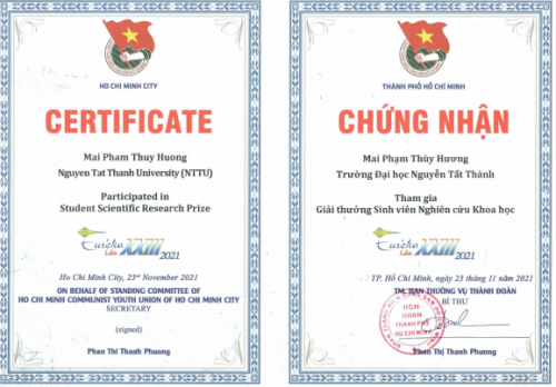 Hình: Giấy chứng nhận tham gia Giải thưởng của bạn Thuỳ Hương