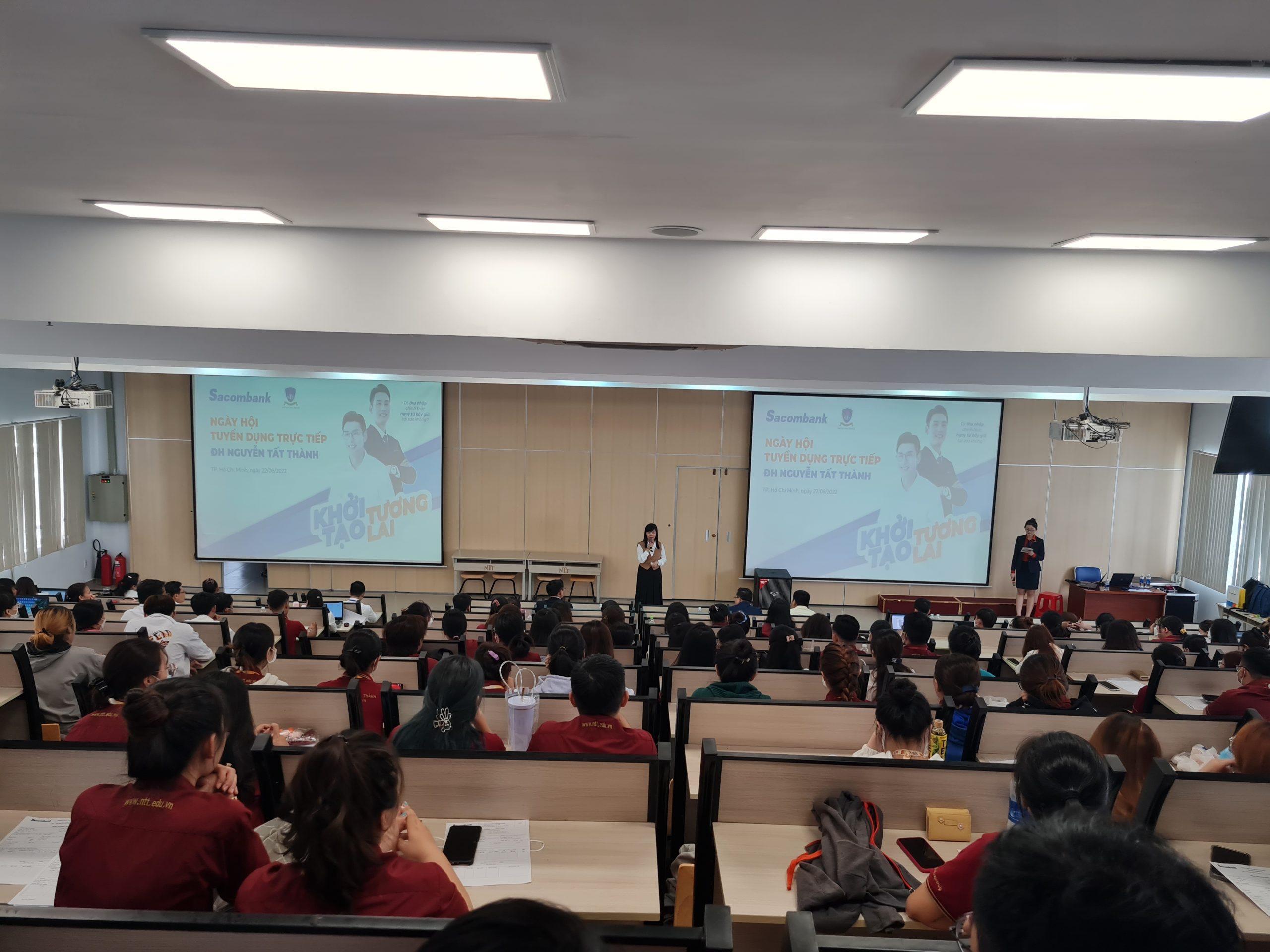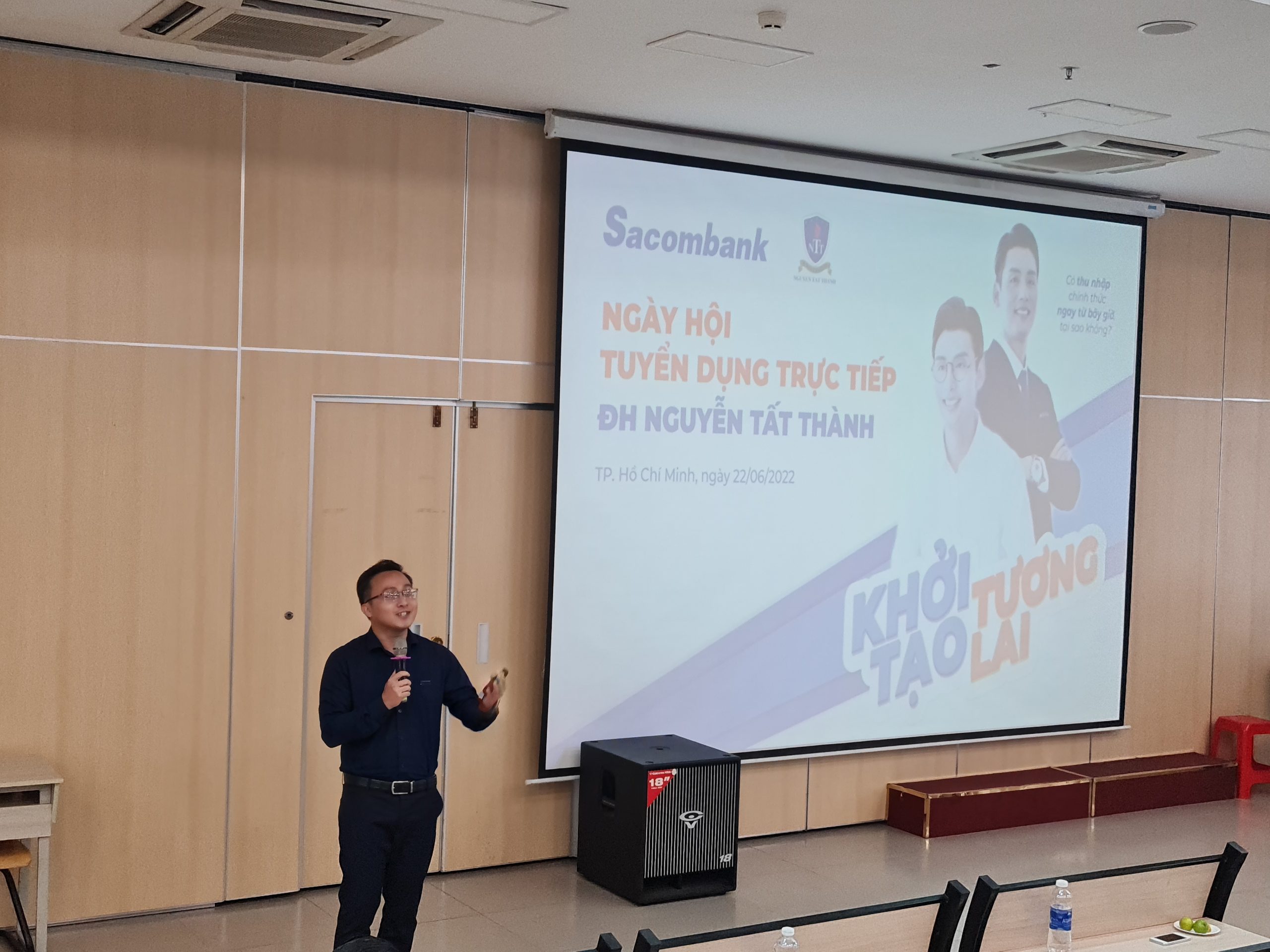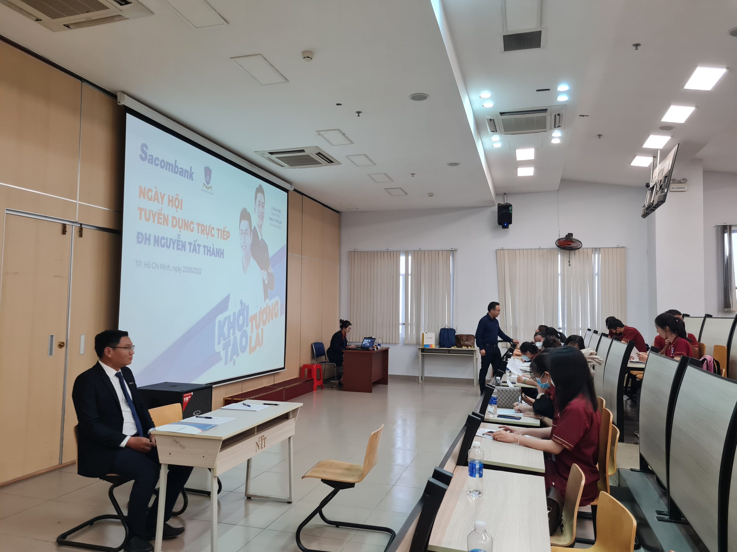 Vừa qua, ngày 22/6/2022 tại Hội trường lầu 9 trường Đại học Nguyễn Tất Thành (Cơ sở quận 12), khoa Tài chính- Kế toán phối hợp cùng Ngân hàng thương mại cổ phần Sài Gòn Thương Tín (Sacombank) tổ chức “Ngày hội tuyển dụng trực tiếp Sacombank-Kiến tạo tương lai” cho hơn 300 sinh viên năm cuối ngành Tài chính ngân hàng và ngành Kế toán.