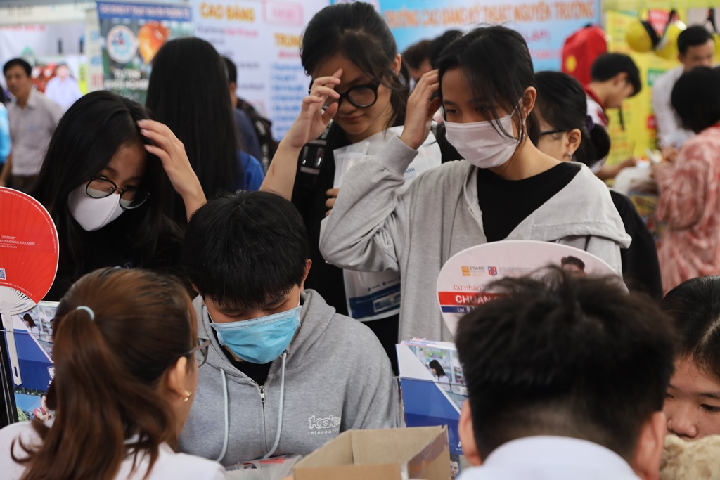 Đông đảo các bạn học sinh đến nghe các thầy cô tư vấn và hướng nghiệp