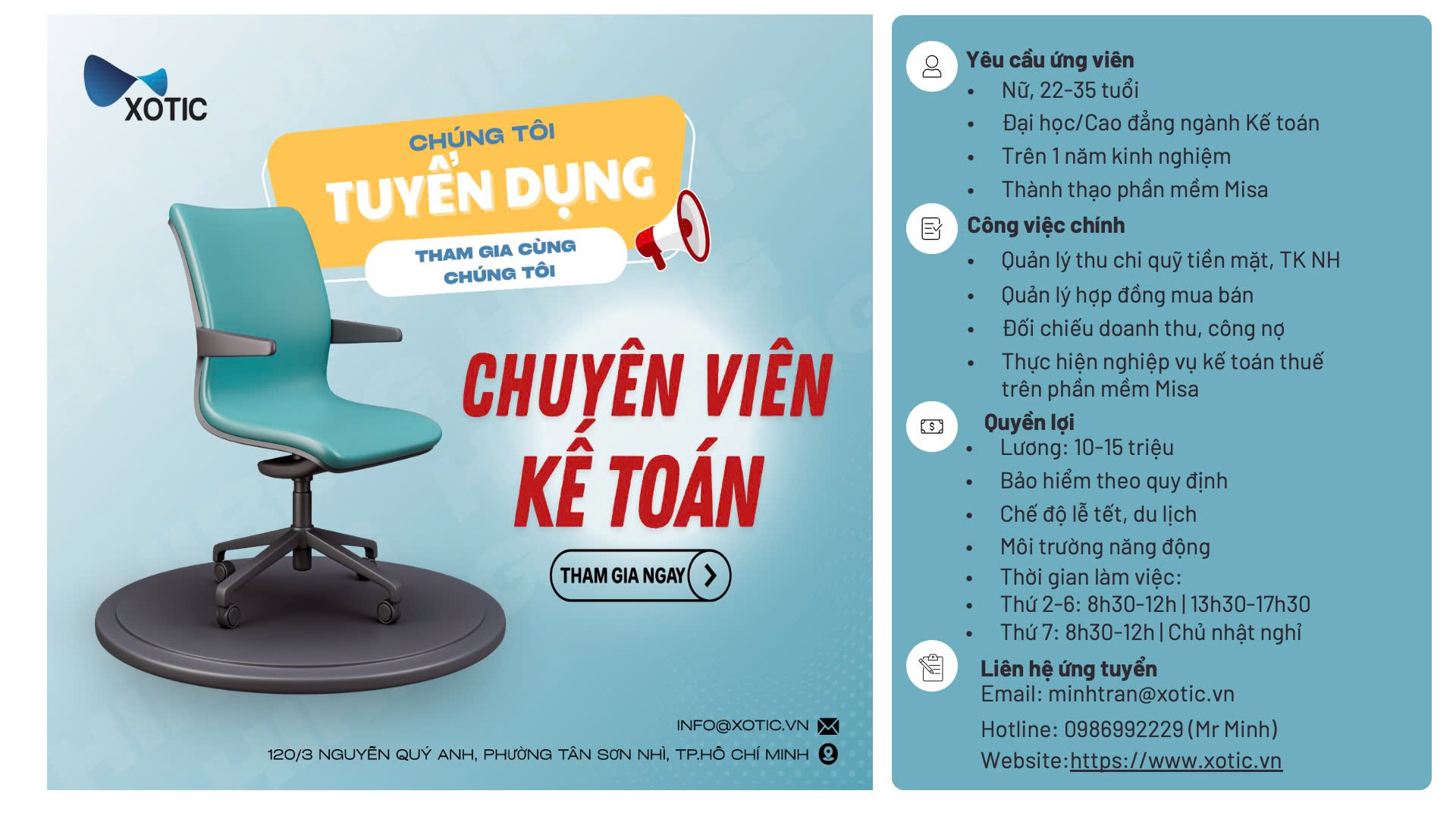 – Ứng viên gởi CV về địa chỉ email: minhtran@xotic.vn